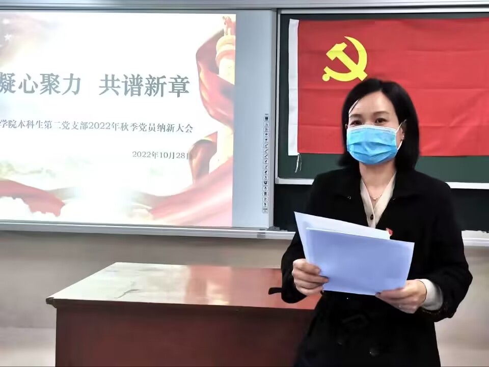 会议伊始,全体起立,奏唱国歌。佘文超、徐依晴、乙笑珊等21名新发展预备党员依次向党组织汇报本人自入学以来政治、思想、学习等方面的基本情况。接着,入党介绍人及在场正式党员对新发展的党员提出意见和建议,并对新党员的不足进行批评和指正。宣传委员刘丽菲宣读了党支部综合考察意见,随后现场正式党员对21名新发展预备党员进行了无记名投票,支部书记相萌萌宣读了表决结果。组织委员贾瑞清宣读了支部大会决议。参会党员在鼓掌祝贺之余,相萌萌对21名同志提出要求,一是要加强理论学习,坚持学党章、学系列讲话和党的二十大精神,不断提升党性修养和政治觉悟;二是要有服务意识和自律意识,作为一名新发展预备党员,时刻牢记自己的责任和义务,严于律己,积极参与学校开展的“靓丽树”行动,主动亮身份,强担当;三是要有奉献和创新精神,她希望大家在班级学风建设、社会实践、志愿服务、创新创业等各项工作中都要做“领头雁”。四是要严肃党内组织生活,严格“三会一课”制度,积极参加主题党日活动。最后,全体起立,面向党旗庄严宣誓。大会圆满结束。