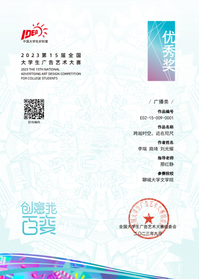 热烈祝贺suncitygroup太阳集团李瑞、路琦、刘光耀荣获“2023第15届全国大学生广告艺术大赛”优秀奖