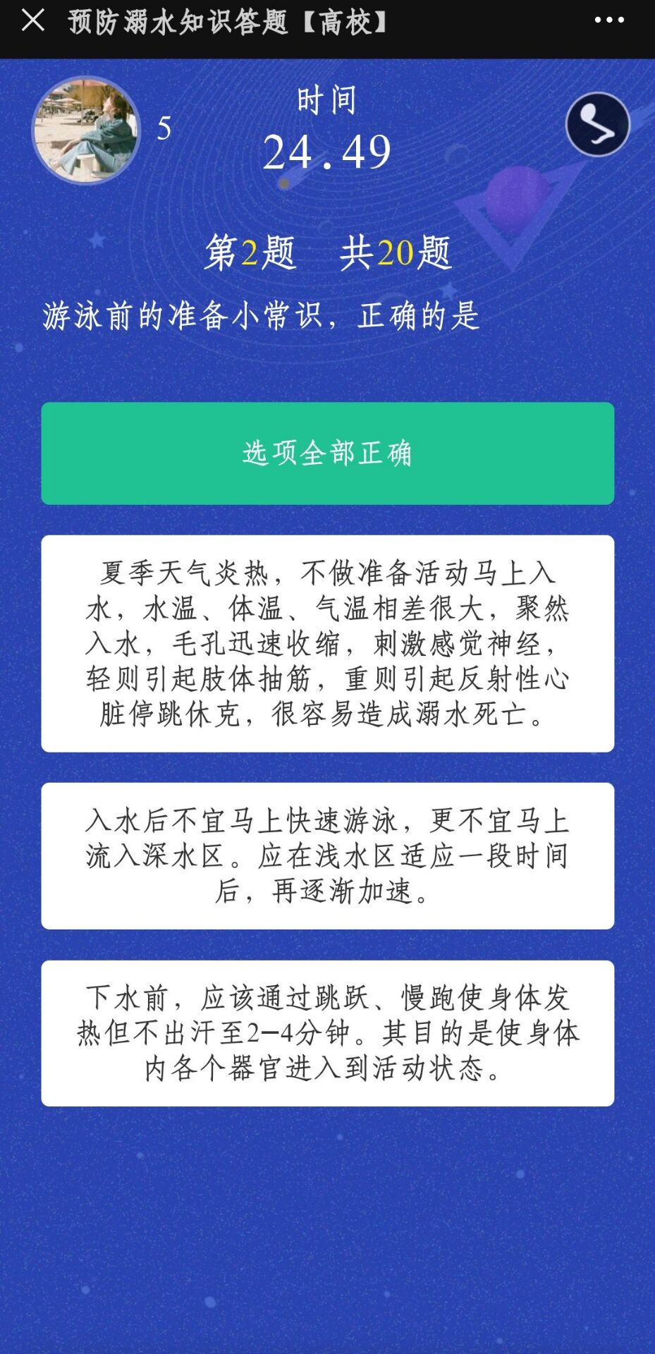 通过召开班会和参与观看预防溺水特别节目与安全知识在线答题等一系列防溺水安全教育活动,让广大师生在树立防溺水安全意识的同时,掌握防溺水安全知识,提高学生自救自护能力。同时,该班会活动也引发同学们对防溺水问题的思考,提醒同学们应珍爱生命,远离溺水。(通讯员 徐雪丽 李凯欣)