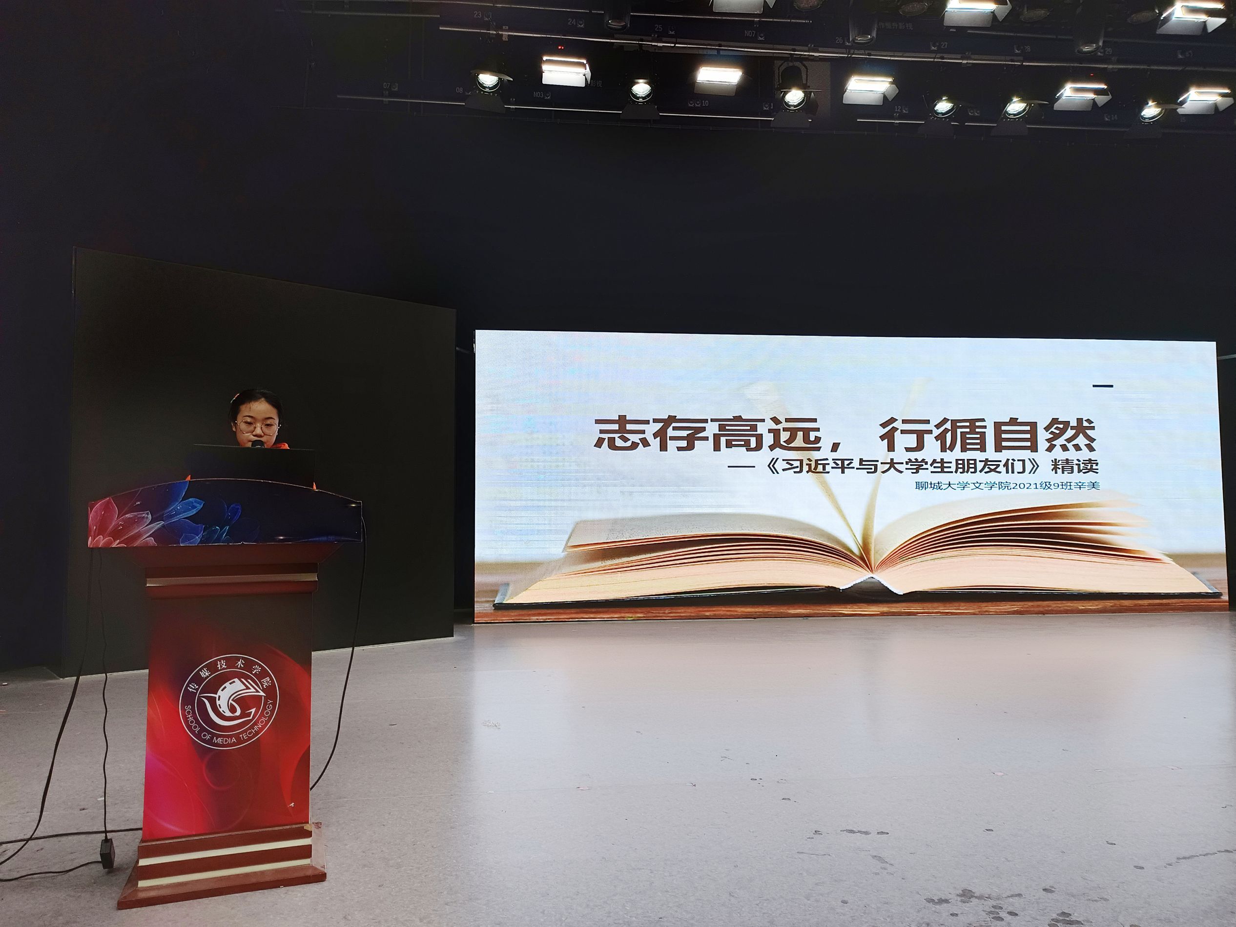 传媒技术学院的王爽摘抄习近平总书记强调的内容——年轻一代应该结合中国的特点把握好自己的路,否则只能牢骚满腹、空悲叹。她感慨到新时代青年要把握时代脉搏,紧跟社会需要,在担当中历练,在尽责中成长。