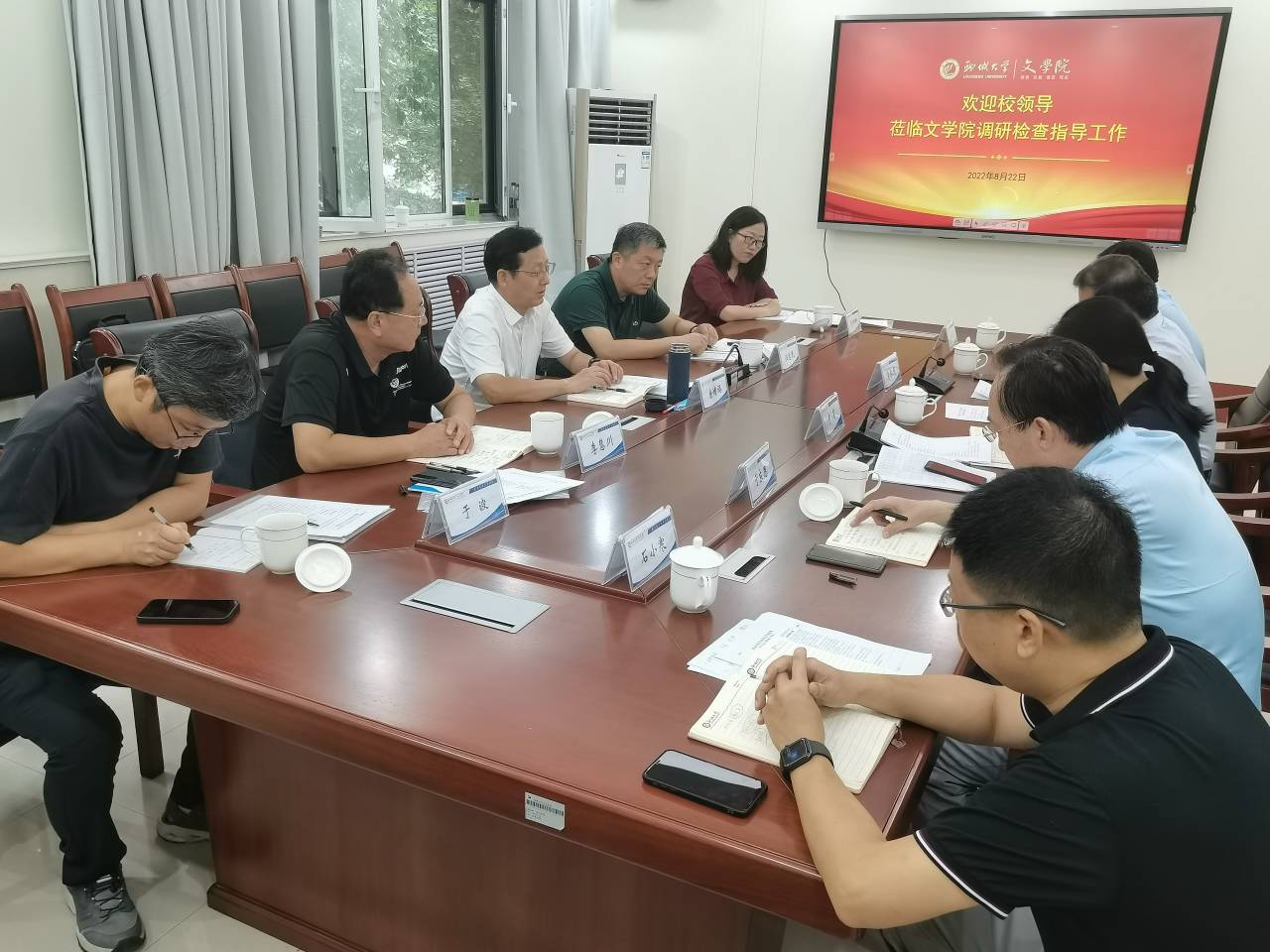 8月22日上午,校党委副书记房增福于suncitygroup太阳集团调研检查指导新学期开学工作,实地检查了学院教学环境情况与教师学生上课情况,并召开座谈会听取相关工作汇报,工会、党委保卫工作部、网络信息中心负责同志、suncitygroup太阳集团领导班子成员参加座谈。