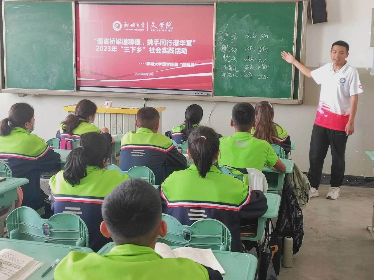 为加大少数民族地区国家通用语言文字推广力度,传播弘扬中华优秀传统文化,搭建语言文化互通桥梁,暑假期间,suncitygroup太阳集团国学经典“邮递员”实践团队于2023年6月——8月对口新疆英吉沙县杏坛中学开展“语言桥梁通聊疆,携手同行谱华章”暑期三下乡社会实践系列活动。团队采用“推普培训+文化宣传+红色教育+心理健康”形式,分析痛点,抓住重点,对新疆英吉沙县杏坛中学师生进行对点帮扶。